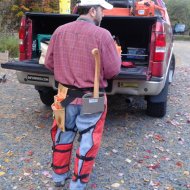 Just wanted to post a pic of my Timber Belt set-up. I have my wedge pouch on the left, and my new Grizzly Peak Industries aluminum Axe holster....