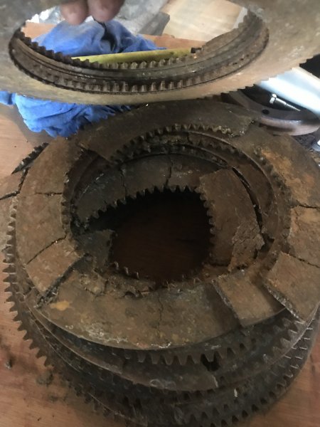 Progress!! Had to make some little retainer tools and ended up chiseling our all the discs once I got the clutch on the bench.