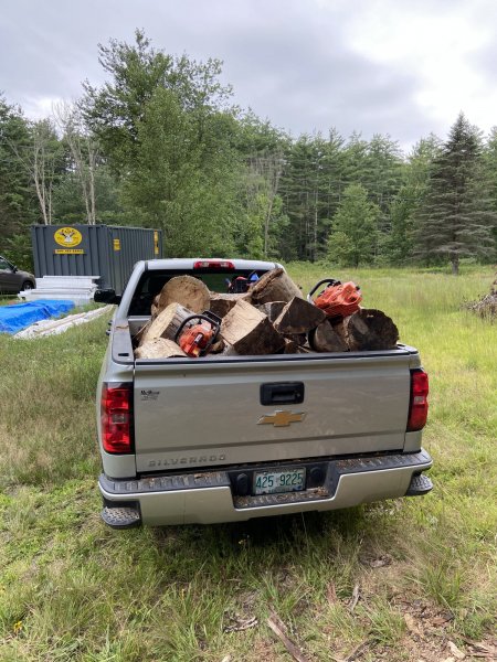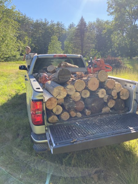 Chopping away at this free wood. Awesome boiler wood for Joe. Saving some cherry and hickory for my indoor bbq, rare to see hickory this good after sitting three years in log form. They split some of the pine chunks huge and dried really nice, most are in yesterday’s pic. Of course Kamo popped his head out of the truck for his fans ( his words not mine) Have a great day kids F03AA9FF-2A54-4915-B4F2-7CBC34565E98.jpeg 690DE0A2-79CF-44C9-9C73-D13CF24859DF.jpeg