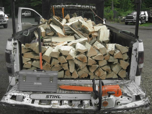 Split the rest of the BL i cut the other day and loaded. Did a little raking and consolidated the HL rounds (need a rack to empty then I'll split it all and load). Some mulberry in the mix. Threw the 28" bar on the 462 and bucked one bigger BL log. Ill stack in the morning.
