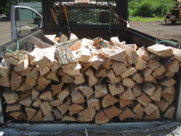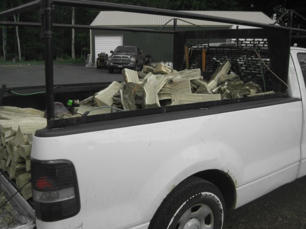 Split, cut then split today. Another heaping load brought to storage and stacked. (Setting on my camera messed up so pics are off color. God only knows what I did to it!)