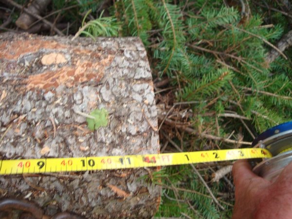 It wasn't easy, but the logs are off the hill. I'm pretty beat, mostly from all the slash piling I did this afternoon. The beer is tasting good, that's for sure. After dropping the tree, decided to measure it out to a 9" top (which will give me some options for some boards out of the top log). Bucked it at 41'. Looking back at the stump. Was hoping it would slide a little further down the hill but she dug in a bit coming off the stump and just sort of settled. Oh well. Here's looking from the butt down towards where I gunned it. Where I've been milling is just on the other side of my truck, so as you can see, it's about as easy a skid as you could hope for. Thar she be. Yanked it off the slope with my truck, then cut 'er in half and used the neighbors 4wheeler to get em to their final resting spot. Worked great and I'm hoping to get two 6x6 beams and a bunch of boards out of the two logs. Looking back up the slope. You can't see it in the pic but trust me, I've got a cold beer in my hand. Still about 5 more trees to get off of there but this will do for today.