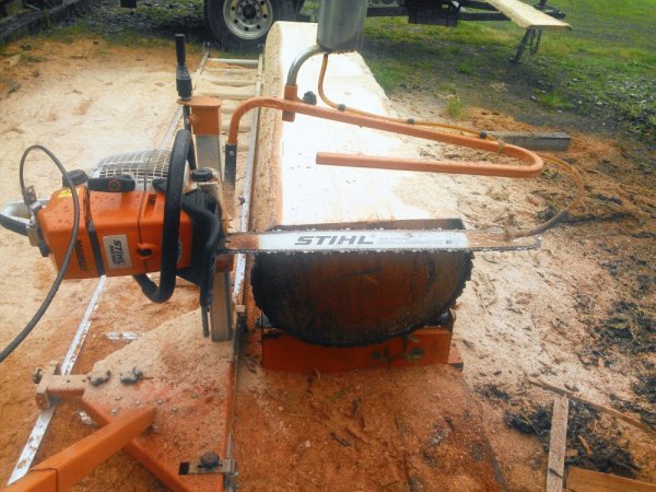 That looks slick mastermech. I don't have any pavement so moving the log around might be sort of tough but it looks perfect for your set-up. I'm thinking about just building a gantry crane type thingamajig with a chain hoist. I'd still need to bring the logs to it, but the lifting into position part would be a snap. Spent yesterday feeling like I had a cold coming on, but it seems like the 24 hour variety thankfully. Might try to get some milling done this afternoon while the weather is still nice. Low 70s and not a cloud in the sky.