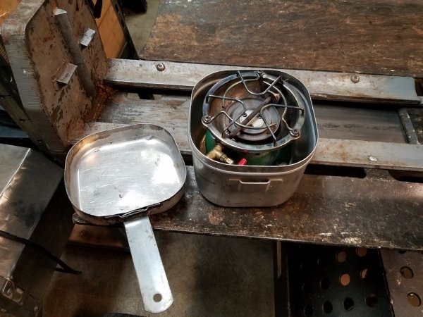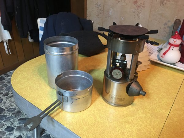 Hey J. Dirt those little stoves work great and you got a steal on that one! They made a heater attachment for them that clip on top. It looked like an overturned coffee can painted black. They worked well but you had to be aware because they got very hot. Mine is lost in the sands of time. I still have the combination stove carrier/pot/fry pan. It works ok also but anything you cook up has a faint taste of aromatic naphtha Coleman fuel from the stove stored in side!