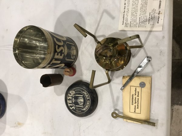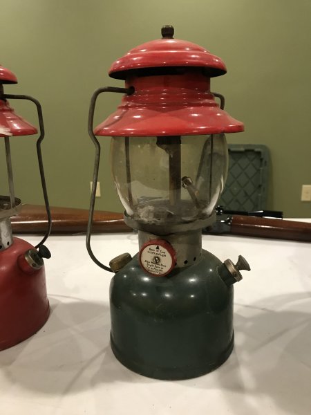 Just got these today from my mom. They belonged to her late husband. They were put back a while ago and I forgot about them. When we were visiting her today she asked if I still wanted those lanterns. Umm, yeah This one is a 200a made in 12 of 55 needs a globe. Should clean up good. also a 200a made in 8 of 51 should clean up well also. Did they make them with a red top and green tank? Or has it been messed with? I’m thinking I’ve seen them before like that. Also has brass colored fuel cap, I’m guessing that’s been replaced. and a heater made in 3 of 67. Don’t know much about the heaters, can’t see a model number but looks pretty good and should clean up nice