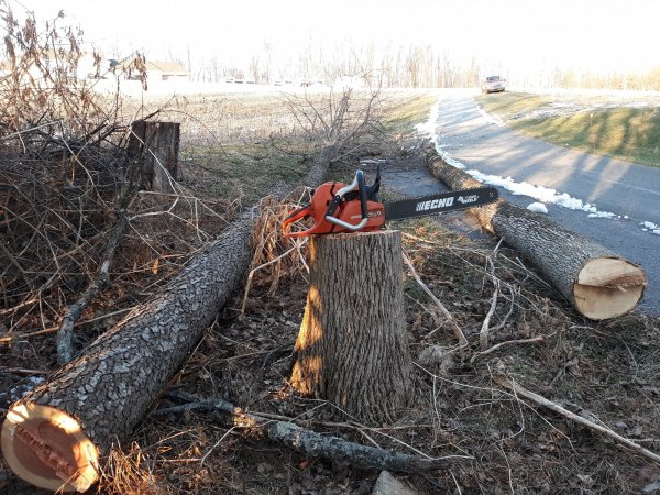 It starts. Dead standing ash and cherry that was dieing. 5 more dead standing ash to come out of this spot.