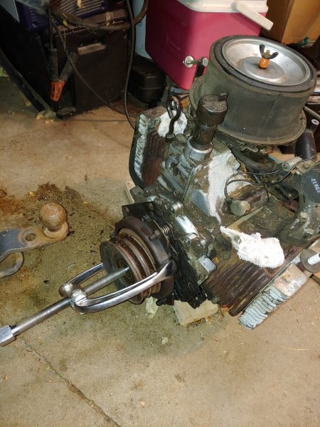 Here's the kt17 out of the ariens and the puller on it. We flipped it so the crank was vertical. This was minutes before the clutch let loose. 20190427_151938_HDR.jpg