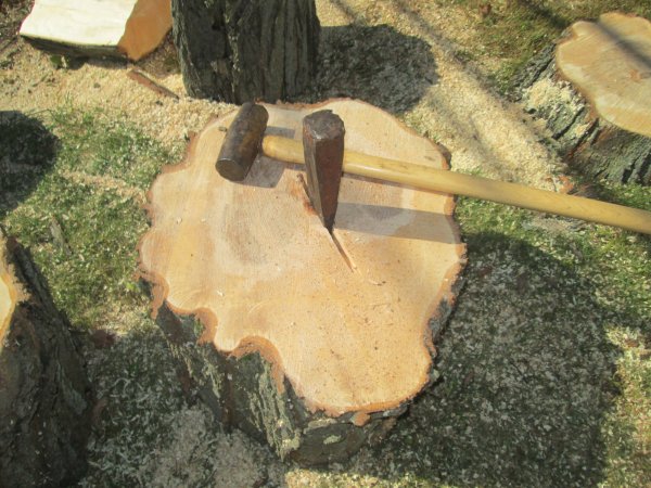IMG_1028.JPG had to sledge and wedge most of the big uns. Wedge popped out of a couple after a few whacks so i cut a kerf to start. Never tried that before. IMG_1027.JPG