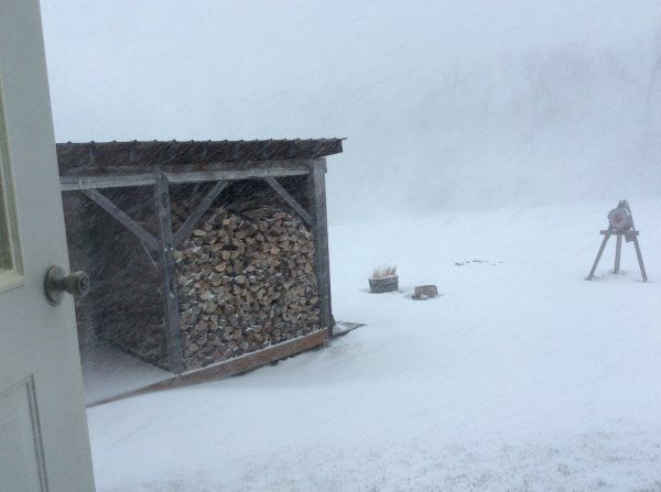 Coming down good now. Looks like a whiteout. Peeking out my deck door. Wood rack on the right. But, I bought a load inside, so I don't need to do anything more than peek at it. Sent from my XT1030 using Tapatalk