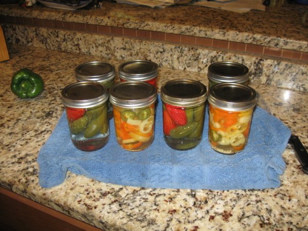 Put up some whole jalapenos and some diced banana peppers:banana:. There were two banana peppers almost 10" long.