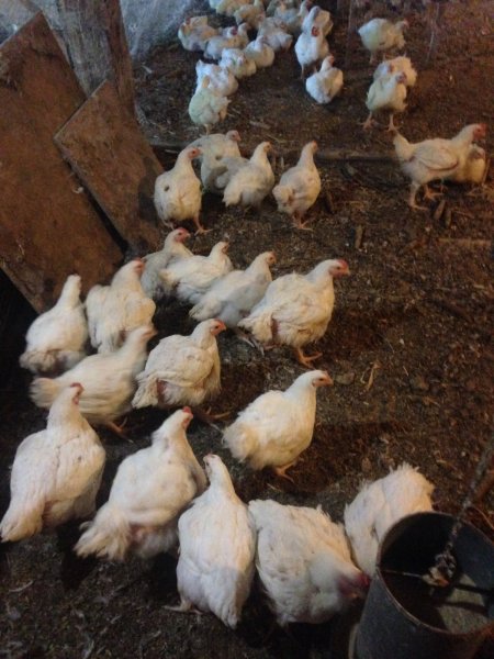 The meat birds consumed 80 lbs of feed and 26 gallons of water yesterday....1 week to go on one batch and 2 weeks on the other.
