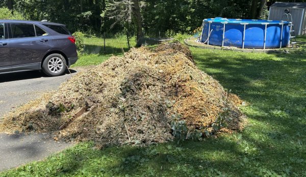 Another load of chips from ChipDrop today. This’ll get dispersed in the same areas as last year, for weed control and to help build up the soil. Red maple and black birch chips this time.