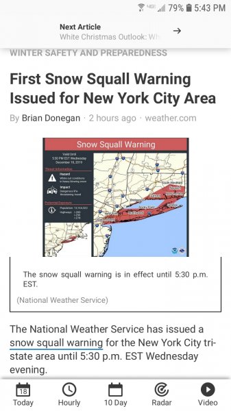 This is the first time I've ever seen a warning like this! It's for new York city. Called a snow squall warning! Really?? They must think we're made of sugar! Ok, driving, get an alert, "SNOW SQUALL WARNING" AAAAHHHH! Boom, head on collision from looking at your phone! They say the reason for the alert is due to snow & wind while your driving. What's next?