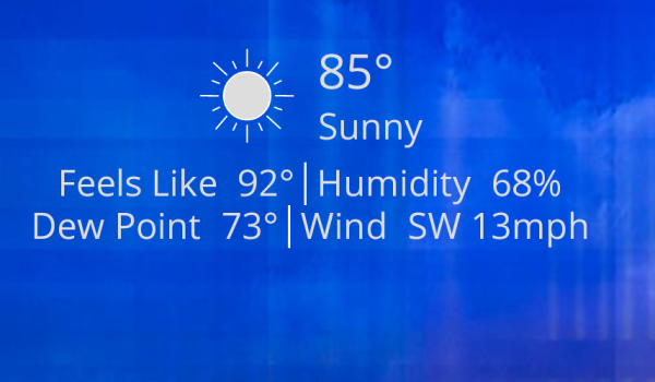 The storms seem to be going by to the north and west of here. Just a bunch of clouds with temps in the low 80's with high dew points.