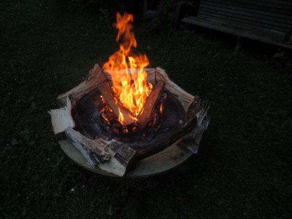 Punky chunks, bark and splitter scraps in the firepit. Steak on the charcoal. IMG_5331.JPG
