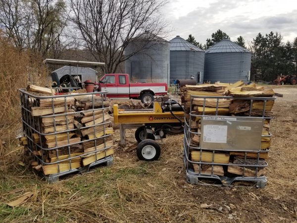 Nice work Stephiedoll ! Had a wet rain snow mix here most of the weekend. I had higher hopes for this year, but it ain't looking good so far. Wet mushy ground at 35F & rainy is not good wooding weather. Supposed to be cool tonight in the mid 20's, but upper 50's Wednesday with you guessed it, more rain. 33 now with some Soft Maple, Ash & Elm in the boiler. Burning my "mixed hardwood shorts" till it gets consistently colder.