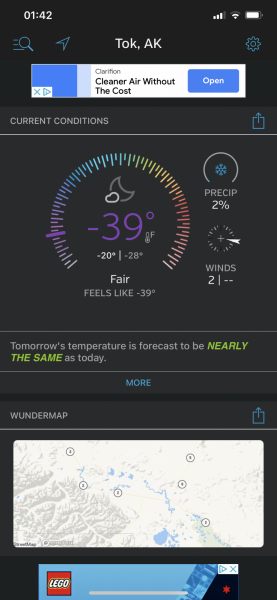 I wonder how cold it will get tonight or in the morning. Not uncommon for us to get our first 40 below in November.