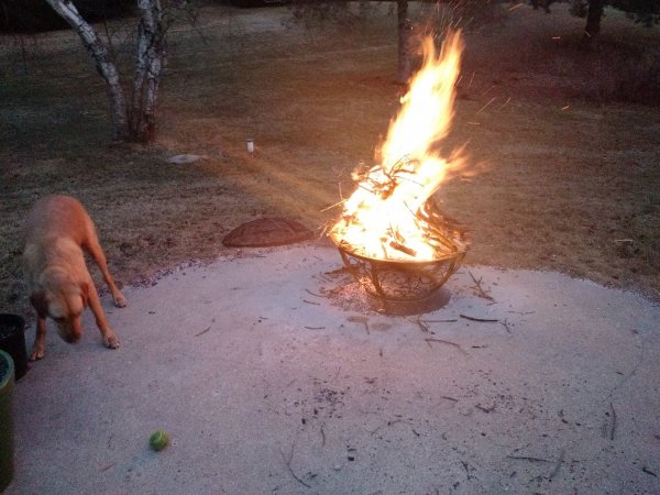 He's got his eye on that tennis ball and it ain't gettin' away... fire or no fire... :rofl: :lol: