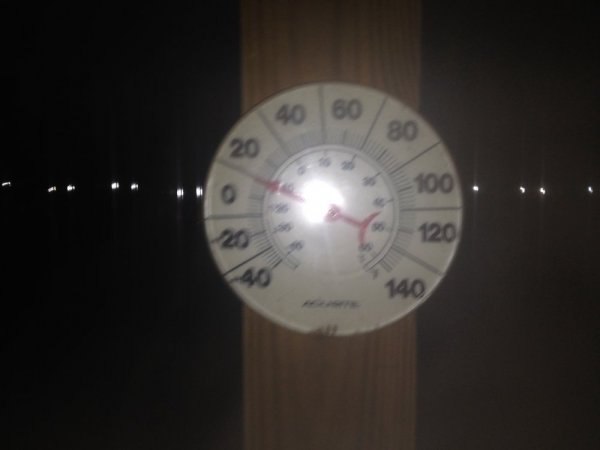 I think it was about 14 this morning, we are burning Beech,Soft Maple, Ash and some Sugar Maple. With some storms moving in, we'll push more wood in tomorrow night.