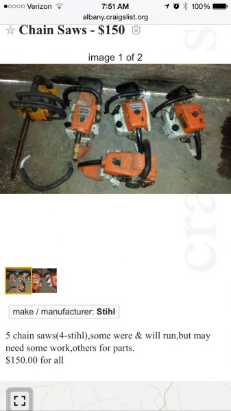I am selling some saws that i have rebuilt and am getting out of the chainsaws so if you are looking for a good deal on a stihl this is likely as good as it will get.