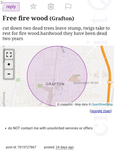 The ad is tough to read because of that. I'd like to reply by asking for pics of the trees so I could give him an estimate for what the job would cost.