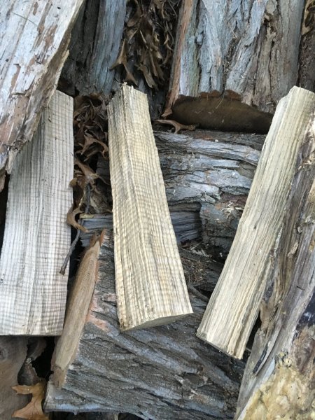 I've got a whole pallet of firewood in my woodshed that consists of pieces deemed "too interesting to burn". Among them are a crotch from a yew tree, a bunch of crooked juniper branches, some apple wood including a stump, curly ash and cherry, and a bunch of larger hop hornbeam logs that I'm saving for tool handles. Some of that stuff has already been there close to a decade. The nice thing about picking through the firewood for craft wood or turning blanks is that it's free.