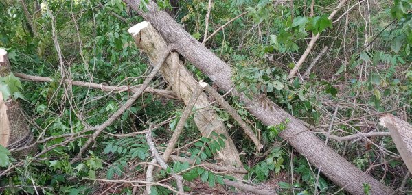 Yes, that's some nice wood left in that trunk. A couple pictures of some wisteria vines tangled up in an elm tree we got recently. One of the biggest vines I've seen... Big vines growing up a big water oak...