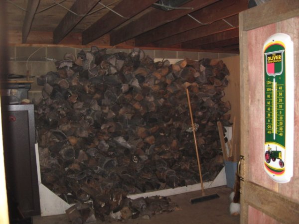 I too suffer from holeinthestackitese. Back in July I filled the shed with 2+ cords. Just the other day I got the urge to slide my basement hoard down the shoot. According to the calculator here it comes up to almost a full cord between the 2 bunks. It has been so warm here and things just didnt work in my favor so I only have about a cord to split come spring but I still have 6 years worth ready to go.