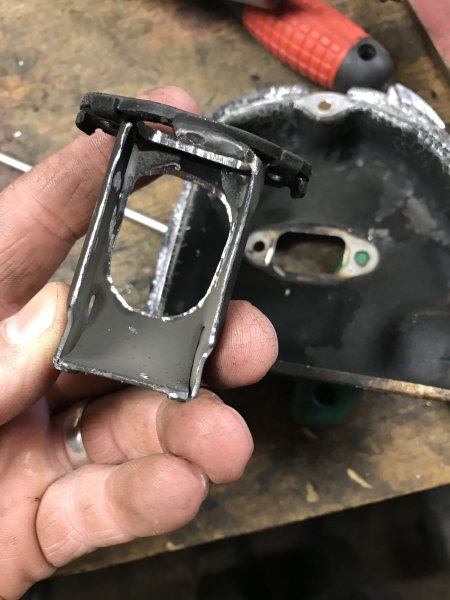 Baffle back in, I also opened the inlet to match the cylinder exhaust port as well as this plate on the baffle and the gasket so it’s all the same size AB9D6CF6-6C52-4FEC-B939-951B1F0690C7.jpeg cold crimped it back together with some pliers then used a drift and ball pien to tighten it up