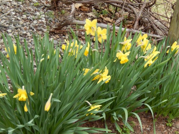 The forsythia are looking good. Mine always looks like cr*p because it tries to take over the world and I have to wack it down by mid summer - even if I have cut it down in the spring. I love the pop of color from the cardinal and blue bird!