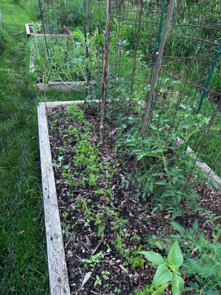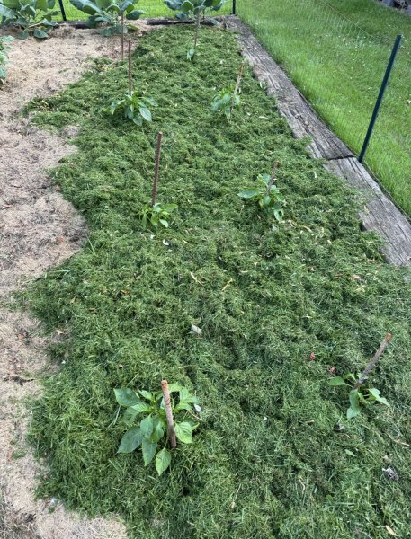 Another layer of clippings around my peppers. Plants aren’t thriving. Maybe it’s just too wet? Tomatoes doing decent. Brussels doing ok. They are a late season thriver but the place sells plants early. Fingers crossed as they don’t like the extreme heat of summer.
