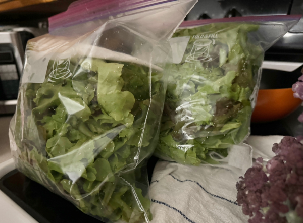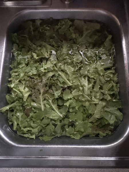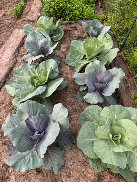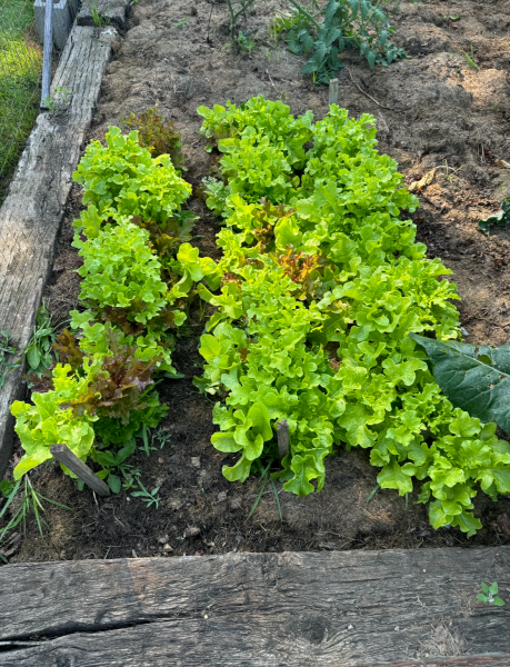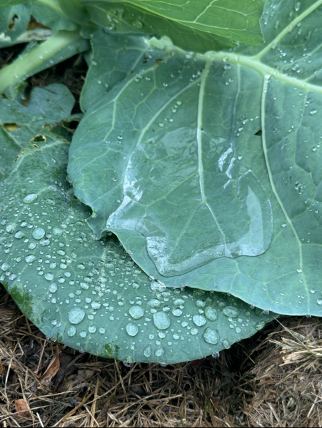 Brussels are thriving due to the low temps here. I think today’s high was 64. Complete overcast and rainy. This will be second cutting of my lettuce. Fresh salads are becoming regular. Cabbage leaf caught some water. Peepers are coming around.