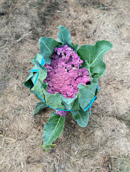 I used to tie a couple leaves together to keep the sun off of it. The white ones would get a sun burn. I've given up on anything that the cabbage loopers like. They're just really bad here.