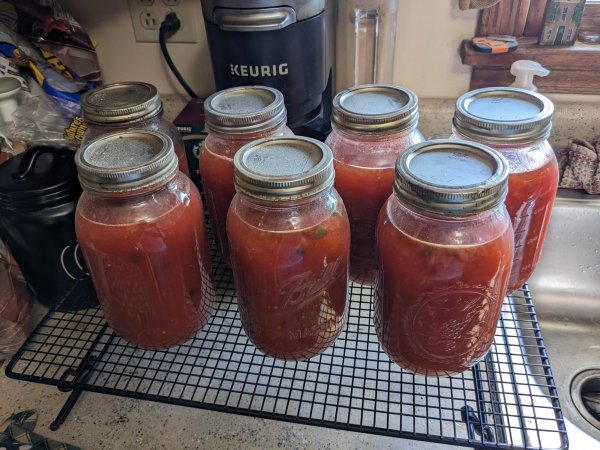 You can't beat homemade tomato sauce! We canned 146 jars over the past week. We do this as a family every year. I buy those tomatoes from local farms. One tip I can pass along to you is to fill your jars up to about 1/4" of the top of the jars. Supposedly less air space leaves less chance of spoilage.