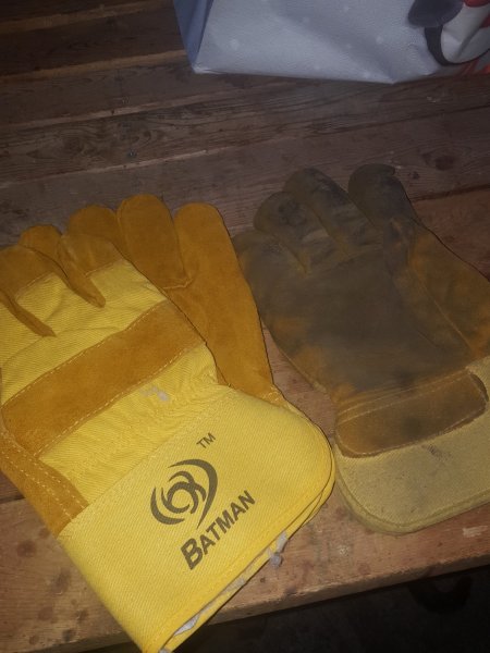 We apparently buy our wood processing gloves from the same supplier. Here are mine. I just karate chop the logs into pieces with these bad boys!