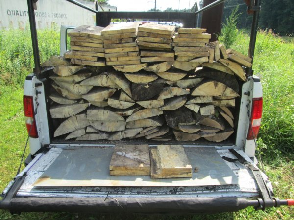I built a half cord log rack out of reclaimed 2x6 deck boards and stacked the hickory from both scores. 10' x 4'10" inside dimensions. I would build these as i acquired wood, but have more than triple the wood i normally have. Triple rows on pallets have replaced these. Had to move the mound out of the way for the rack which was a pain. Limited room. The wood will get delivered to my friend at the end of the year. The empty spot will get filled with the milled cut offs. Couldnt get my PU in as the neighbors car was in the way.