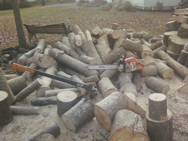 Shawn - I was bucking a few pieces of elm + oak just now (see pix) when a ramdom guy pulls up with 1/2 pickup truck full of nice cherry. "You want this?" he asks..."I can bring a bunch more". Some days are better than others! Pictures tomorrow...wifey barking orders, gotta run.