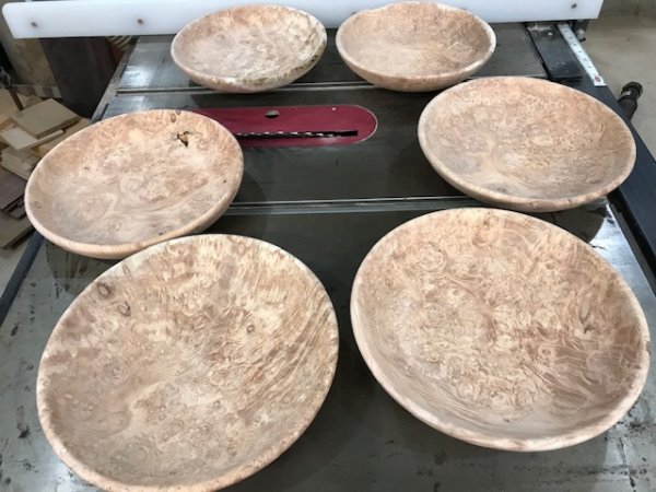 Just wanted to update you, the bowls are one coat away from final. They look mesmerizing to me, and check out the two with live edges.