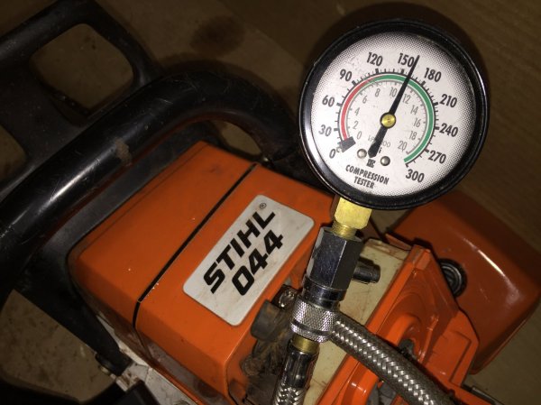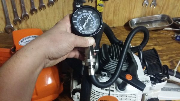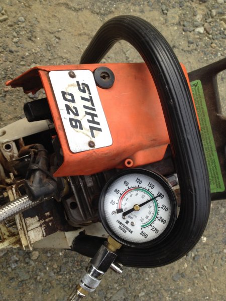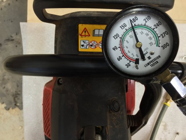 I built a small saw recently that had an unexpected comp reading. I used an 026 cylinder and Meteor piston in an 024 Super case. After almost 3 tanks of fuel, it is showing 185 psi already.