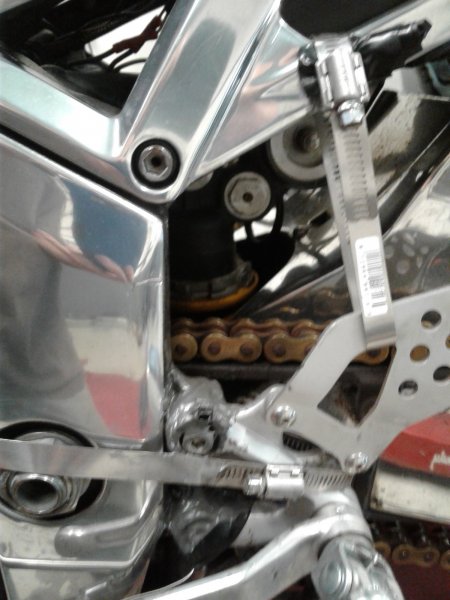I about sheit when this came in today. The tabs that hold the foot pegs and controls broke off, so this (insert colorful adj) guy decided jb weld and hose clamps would do!