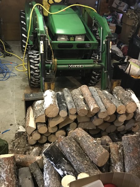Good, just in from a little bucking. 441 don’t mind the cold. John made quick work of bringing into the garage.