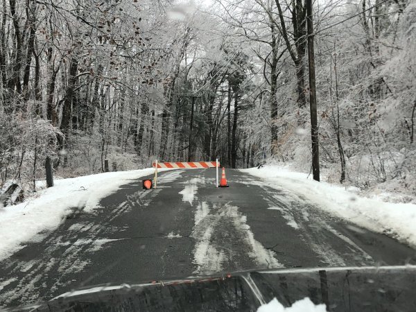 Went for a drive down our road and then down by the lake. Think we definitely lucked out. If the wind was any stronger or the changeover from freezing rain to sleet/snow didn’t happen, I think this would have been a different story. Mostly just pine branches and debris down along the roads. One house had a huge white birch fall on it. Doesn’t look too bad. Couple smaller ash trees came down. This big, gnarly pine came down across the road. I might take a truckload for the maple arch. Feel bad for my neighboring maple producer though. He lost a handful of maple tops in his beautiful roadside sugar bush. Old trees, too. Couple smaller diameter maples snapped right in half. This one by the road is leaning now. Maybe a gust of wind caught his hill just right... who knows. Still some wires down over by the lake.