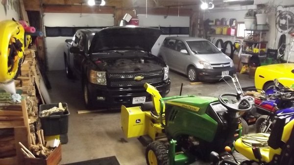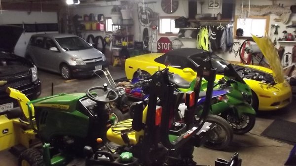 I never used to worry too much about a few mice in the garage. I figured the cats would take care of the problem. This summer, I bought a car for both of us to enjoy in the summer months and it will have to stay in the garage all winter. I also keep a stack of firewood that's 19' long by 4'+ high in the garage. So it's been a predicament... Keep the cats out of the garage so they don't climb on my convertible and use the top as a scratching post... Or, risk chewed wires and mouse nests built in the ducts and under the hood of the car.. So, I bought a crap load of these... I have 14 traps in the garage and 7 in the house. I have several new ones in reserve, and I'm thinking of adding 4 more, one next to each tire of the convertible.. This is my kill count since the weather started to cool down.. In recent weeks, the catch rate has slowed. I think replacing the gasket on the bottom of the overhead garage doors has helped a lot. 39 in traps in the garage, the cats have got 4 from the garage. They don't go out unless one of us goes with them. 2 in the traps in the basement. Only 2 traps that have snapped and not caught anything. They're all baited with peanut butter. This is what the garage looks like. It's a little cluttered, but packed in there is, my truck, her car, 2 motorcycles, a tractor, the fun car, a log splitter/mower/tiller/etc. and lots of firewood.. I leave the outdoor wood piles alone and let nature have at it! They only thing I do is try and control the deer tick population by trying to eliminate the early stages of tick growth. I place short pieces of 1½" PVC pipe, stuffed with permethrin coated cotton balls, around the wood piles. The mice use the cotton balls to build nests and the permethrin rubs off on them.... killing one of the stages of ticks and not effecting the mice. The ticks don't mature and find their way to the deer... The results have been pretty dramatic. When we first moved here, I couldn't walk down the gravel driveway to the mailbox without picking up a tick or two. Now, after several years of the home made tick tubes, I almost never find a tick around the yard or back woods.