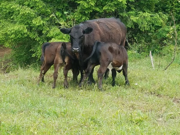 How's this? Our cow Clover feeding three calves. Only one of them is hers.