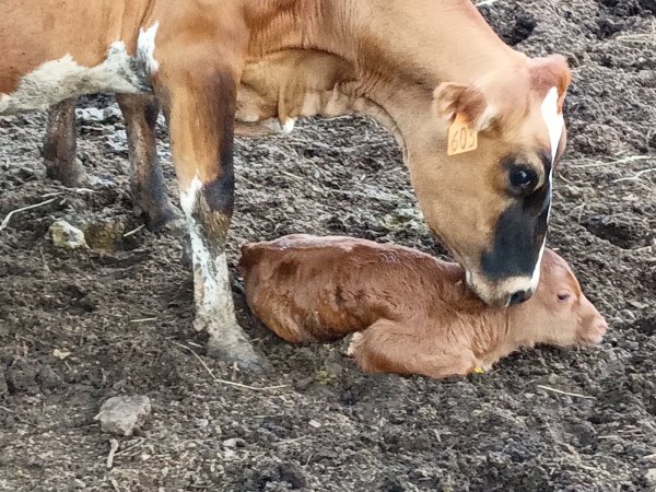 Our milk cow Annabelle gave us a heifer calf yesterday.
