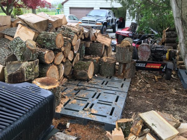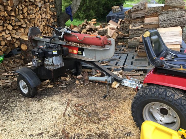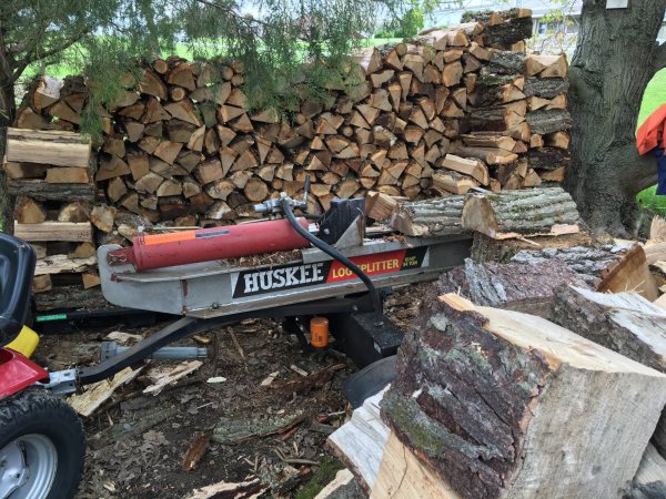 The Wood Wolverine , that elm fought me the other day while splitting it. I swear, splitting elm without a push through splitter would really be a pain. I've never split elm on the H/V non push through splitter, but I just recall your pictures of your fun. On the push through, if one doesn't split all the way before the end of the piston stroke, then you just load the next piece on and it will finish the job. These pieces were all noodled by the asplundh guy, so that probably helped.