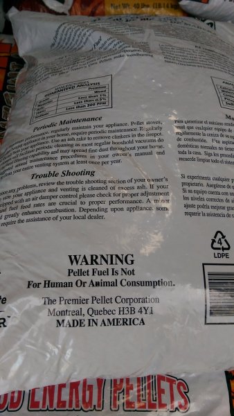HI IHatePropane, Thanks for both of the those photos. What Lowe's Store did you purchase from? I could not tell for sure from the photo, but does it state Nature's Own above FUEL. When I return home tonight, I will take another look at my bags and post the UPC number. Your photos like like my bags. My bags state Products of Canada. My bags came from Lowe's, Epping, NH. It looks like we need to get the word out that when you see a bag of Nature's Own in a Lowe's Store, or when talking to Customer Service over the phone, that a person should check whether the bag is from Canada or American. The American version of "Nature's Own" would be a 100% hardwood == to Stove Chow as 100% hardware is the only product of the Energex PA, USA mill.