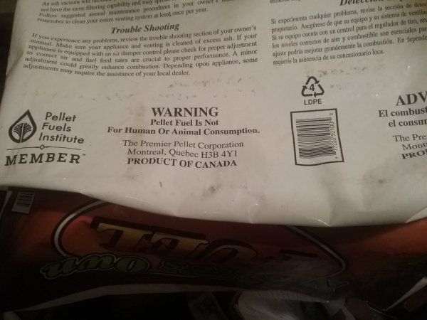Interesting! I'll open the skid of Nature's Own in my garage and post up the UPC info. Do they tag the bag like other pellet makers with the plan origin? Those are always fun to try to read. You sometimes need a jeweler's loupe!