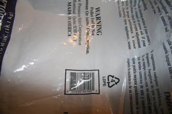 Folks, When I got home last night, I read the UPC from my Nature's Own, Product of Canada 7 77220 50100 5 This is the same as what Jay posted above. This morning, I to tried calling both Energex Canada and Energex PA. No answer. I suppose both are closed for the Good Friday holiday. I will talk to Energex next week about this putting two different products in the nearly same bag with the same UPC, but differentiating only by the required legal labeling of country of origin. I am not completely happy with Energex. I need to provide some more explanation. What I am not completely happy about Energex is the confusing game of what product they put in bags. I think I have been lucky. My 7 tons of Nature's Own is Product of Canada, hence 60% softwood.