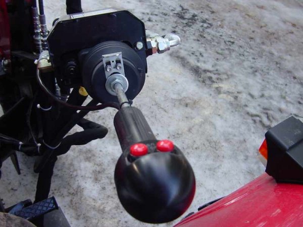 Here's the third function kit with the plow on the 4540. The first picture is the joystick with your angle controls for the plow (red buttons), the third picture is the third function kit on the side of the tractor,the six picture is the curl function , the seven picture is the dump function with the plow (it will go further) .